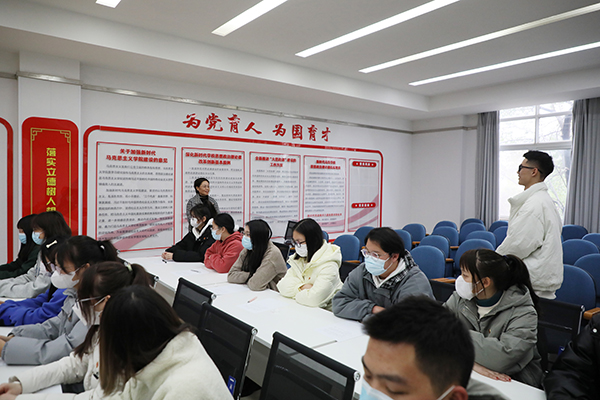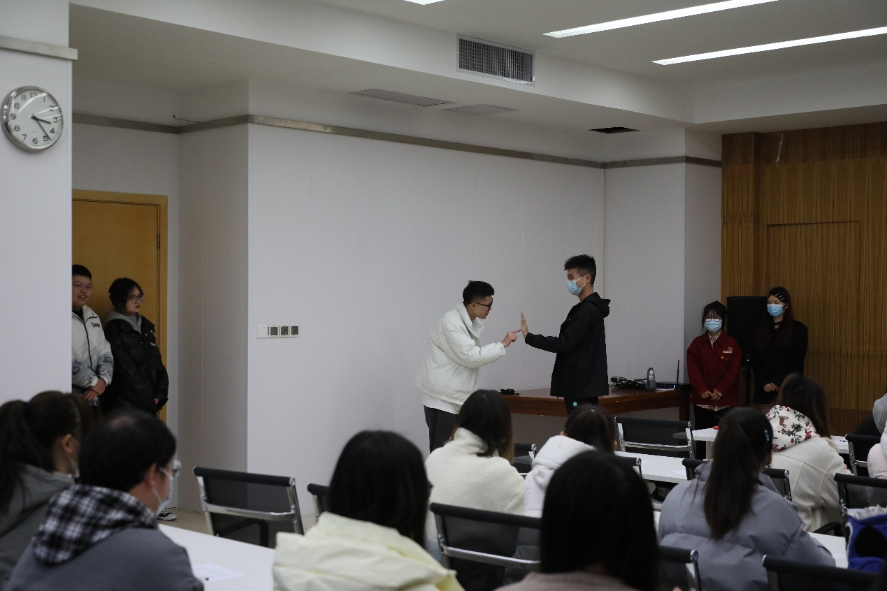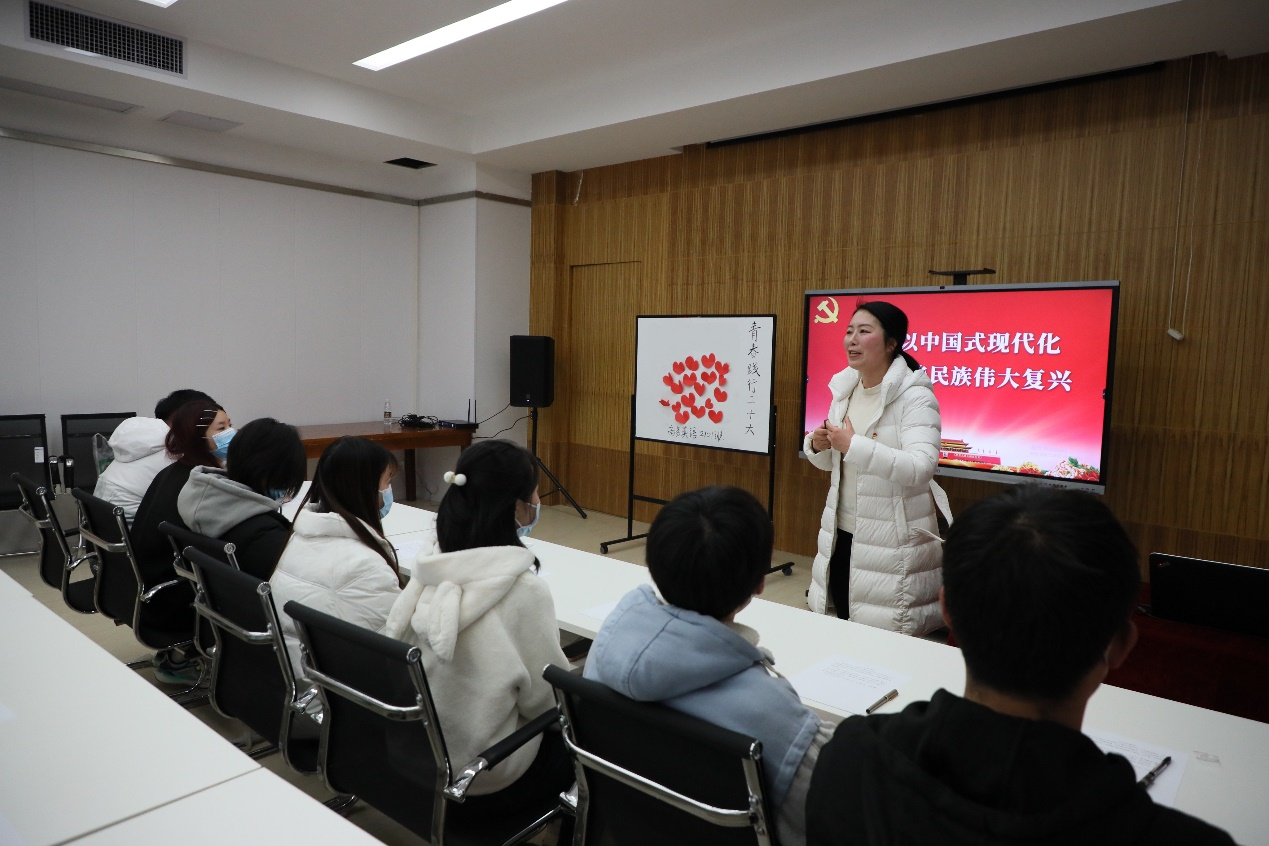 潘静玲老师围绕“爱国、团结、奋斗、科学、互助”五个关键词,结合自身寒假返家乡见闻、通过组织员工观看学习视频、书写青春寄语等多种形式,与同学们一同分享了践行党的二十大精神,立志成长为新时代好青年的感悟。同学们以风趣幽默的小品表演,结合新时代十年发展畅谈科技发展对生活带来的便利影响。