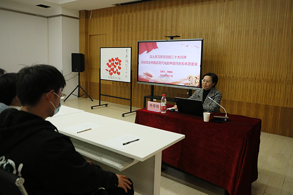 班会上,冉书记以“深入学习贯彻党的二十大精神深刻 领会中国式现代化的中国特色和本质要求”为题,从深刻领会中国式现代化的中国特色、深刻领会中国式现代化的本质要求以及在推进中国式现代化的火热实践中贡献青春力量三个方面,向同学们充分解读了中国式现代化的内涵。并勉励同学们在日常学习和生活中,一要立大志,紧盯学业目标,锚定职业规划,把握奋斗方向; 二要明大德,打牢道德根基,提升道德修为; 三要成大才,学习新理念、探索新方法,增强自身本领; 四要担大任,树立与新时代同向同行的理想信念和价值追求,激扬青春风采,不负青春年华。时刻保持清醒的头脑,坚定信念,在推进中国式现代化的火热实践中贡献青春力量。
