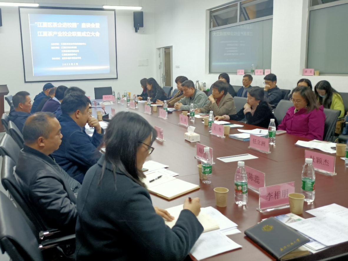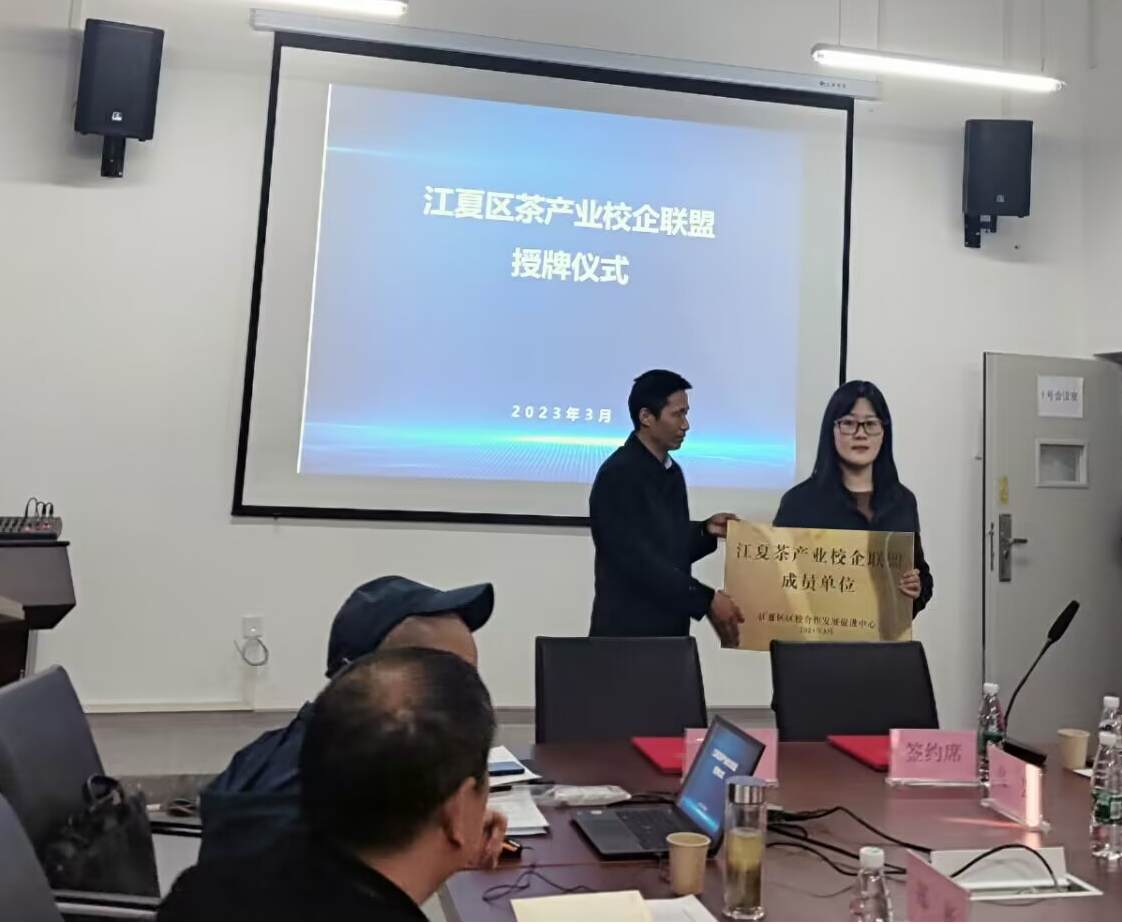 本网讯(通讯员 张陈蕊 王雯)3月30日,武汉市江夏区人民政府办公室分管领导、区校合作发展促进中心、区园林和林业局、区农业农村局、区融媒体中心、区高校代表、区茶企代表相聚在武汉外语外事公司综合楼一号会议室,召开以“江夏区茶企进校园”为主题的校企对接座谈会,会议由区校合作发展促进中心主任刘俊主持。商公司旅游管理教研室主任张陈蕊、文化产业管理教师王雯参加了此次座谈会。