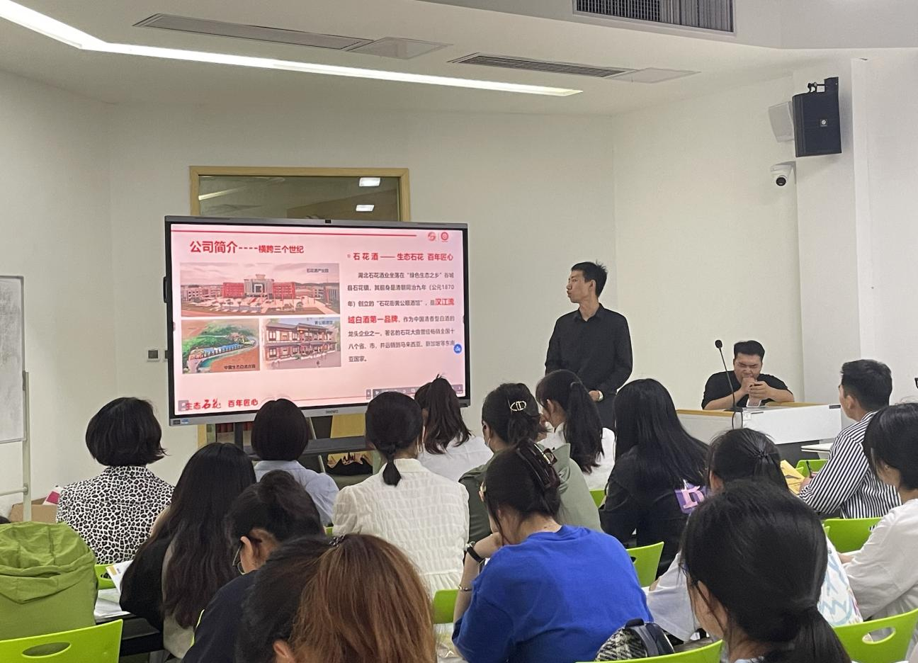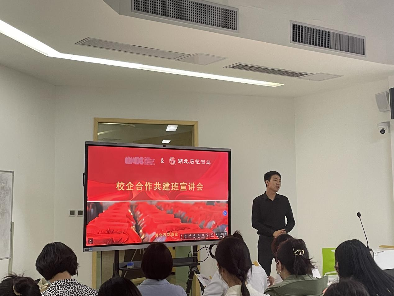 本网讯(通讯员 王思琪 孙严育)5月16日下午,湖北石花酒业第三届校企共建班宣讲会在公司得一堂A2049教室成功举行,吸引了2020级市场营销、国际经济与贸易、文化产业管理和商务英语等专业的一大批优秀学子参加。
