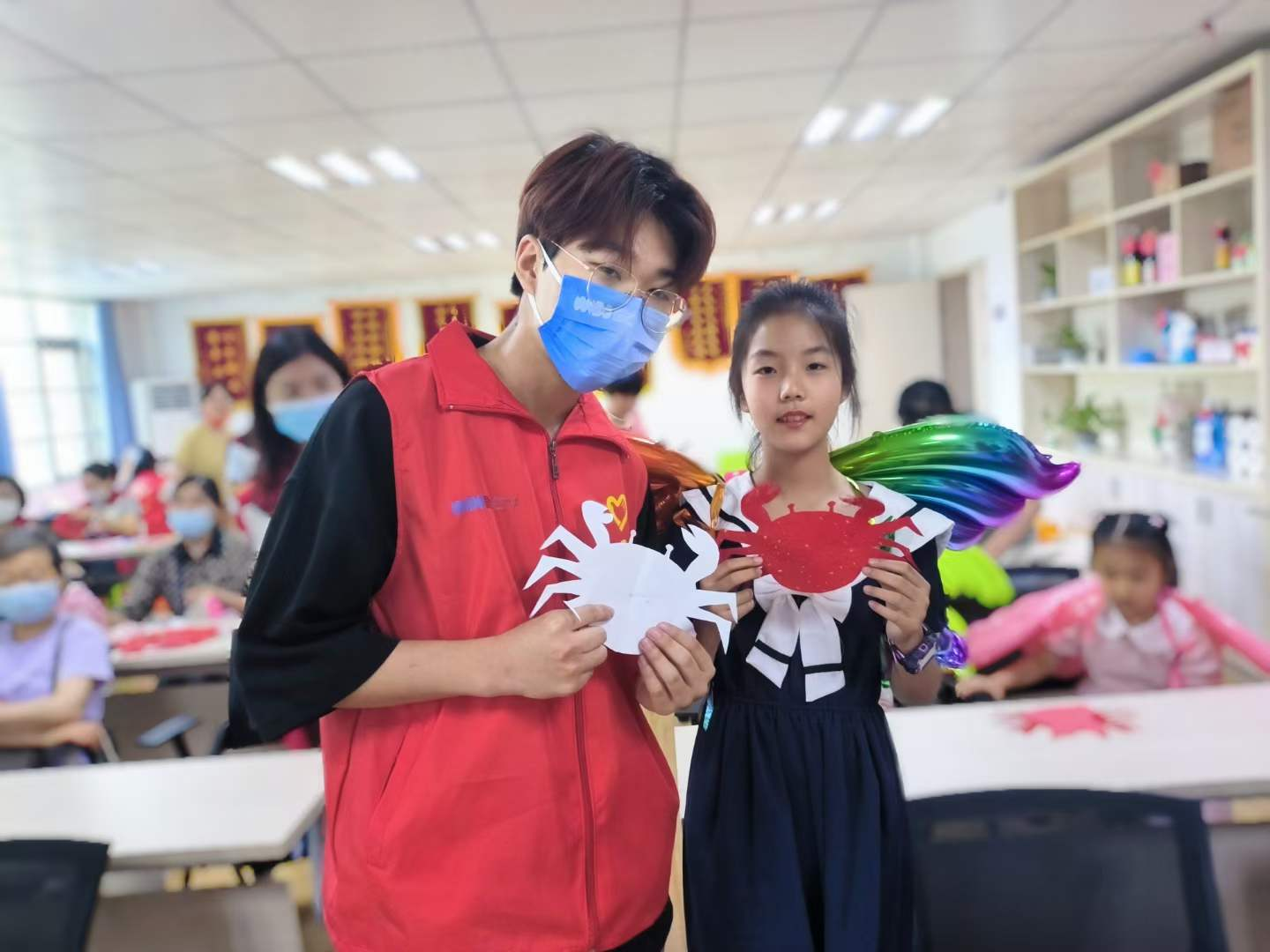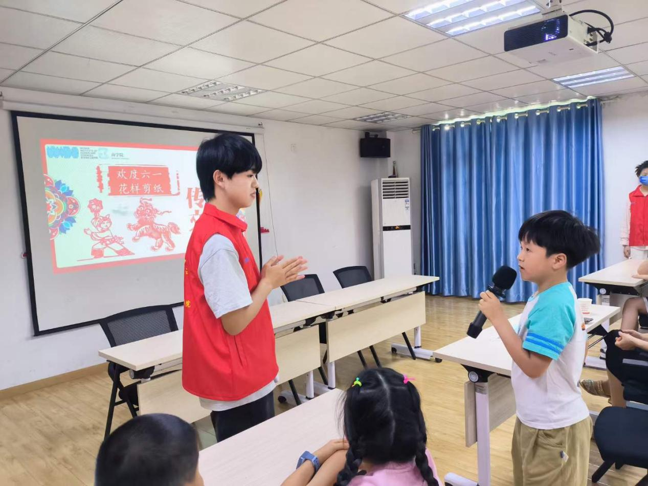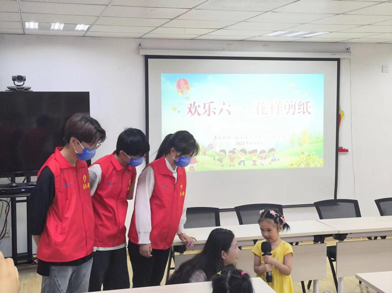 商公司“五色商行”志愿服务队的志愿者们在刘茜老师、张瑾老师和鲜于开悦老师的带领下,联合清江社区开启了“欢度六一 花样剪纸”小课堂。
