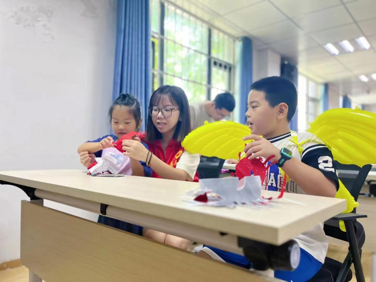 志愿者在剪纸课堂上提问时,小朋友们踊跃回答,表现出对剪纸文化极大的兴趣,志愿者们给所有小朋友们准备了学习用品和小翅膀作为纪念品,鼓励小朋友们更加热爱中国传统文化,学习中国传统技艺。