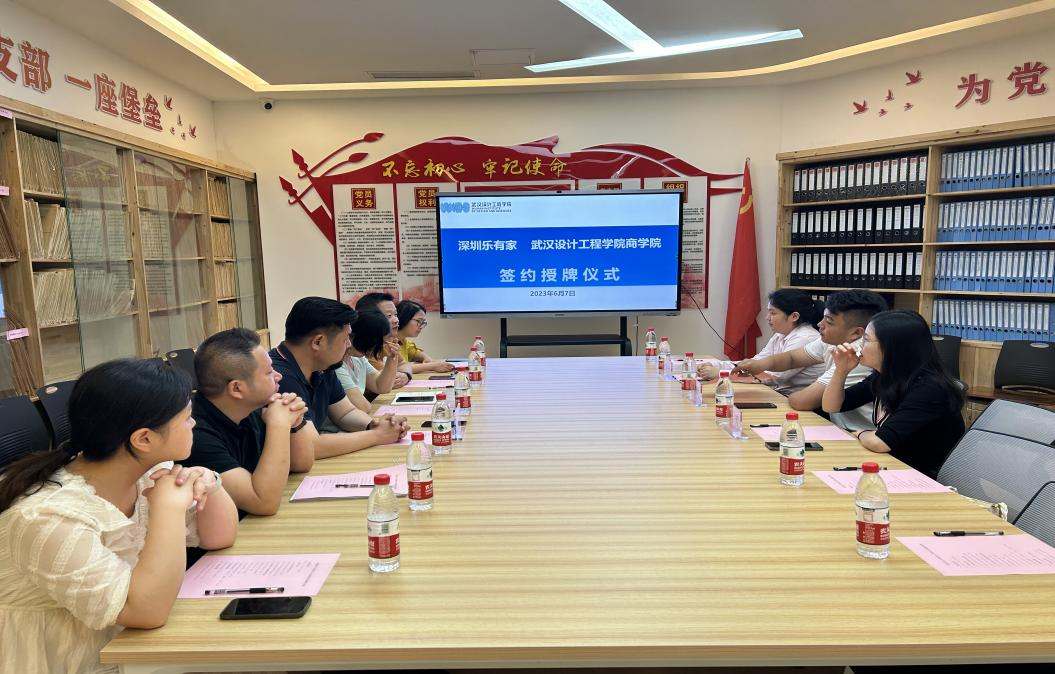 本网讯(通讯员 孙严育)6月7日上午,商公司与深圳乐有家集团校企合作签约授牌仪式在商公司会议室成功举行。产学研中心副主任王欣、商公司党总支书记胡紫玲、副经理祁峰、专业教师和就业专员,以及深圳乐有家集团营销副总裁李帮财、深圳乐有家营销副总裁助理谭芳、武汉乐有家行政经理杜寒玲一行3人出席了签约仪式。