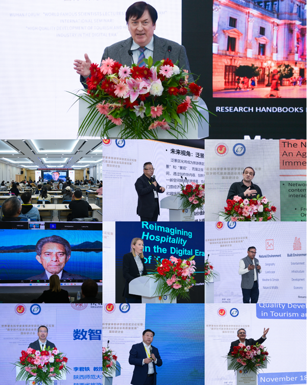 此次会议汇聚了国内外知名专家,围绕数字时代旅游酒店业的高质量发展进行了深入的交流与探讨。美国普渡大学终身教授、英国格林威治大学教授Alastair A.Morrison生动系统阐述了数字时代的旅游质量谱系。美国俄亥俄州立大学人文科学系服务管理与酒店管理专业Jay Kandampully教授、美国乔治·华盛顿大学商公司酒店管理专业于良教授、陕西师范大学地理科学与旅游公司经理李君轶教授、英国格林威治大学酒店与旅游学术项目负责人Maria Gebbels副教授分别围绕旅游服务创新、酒店业数字化发展、数智化赋能文旅深度融合等主题进行了主旨演讲。北京第二外国语公司张凌云教授、英国萨里大学Daniel Knox副教授、英国萨里大学Jashim Khan副教授、湖北数字文旅集团陈飞副总经理、扬州大学Richard Dunham副教授分别围绕智慧旅游的新动能与新场景、数字时代沉浸式旅游体验、数字时代旅游目的地品牌建设、文旅数智化建设体系、新金砖成员国发展契机等主题进行了报告与交流。