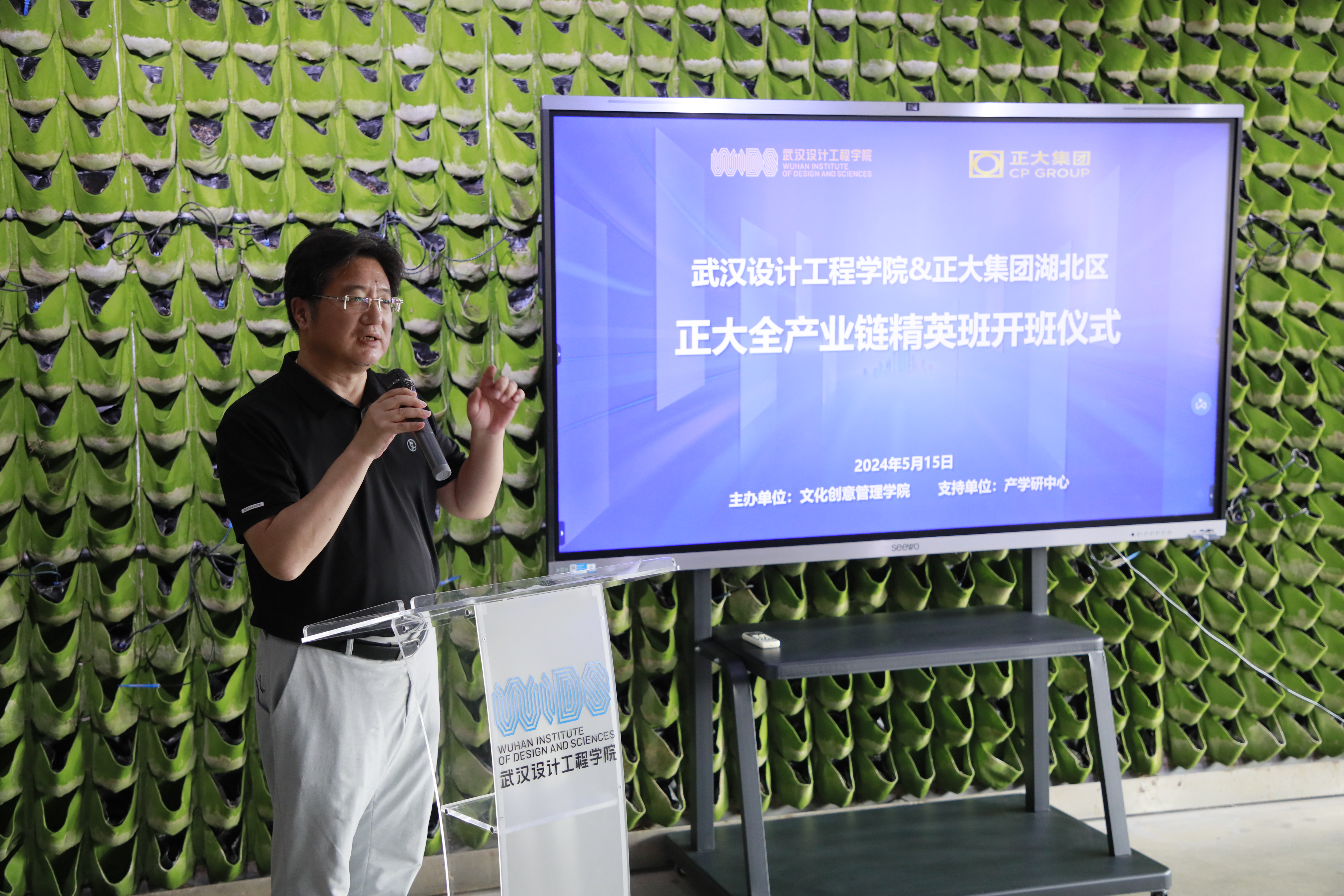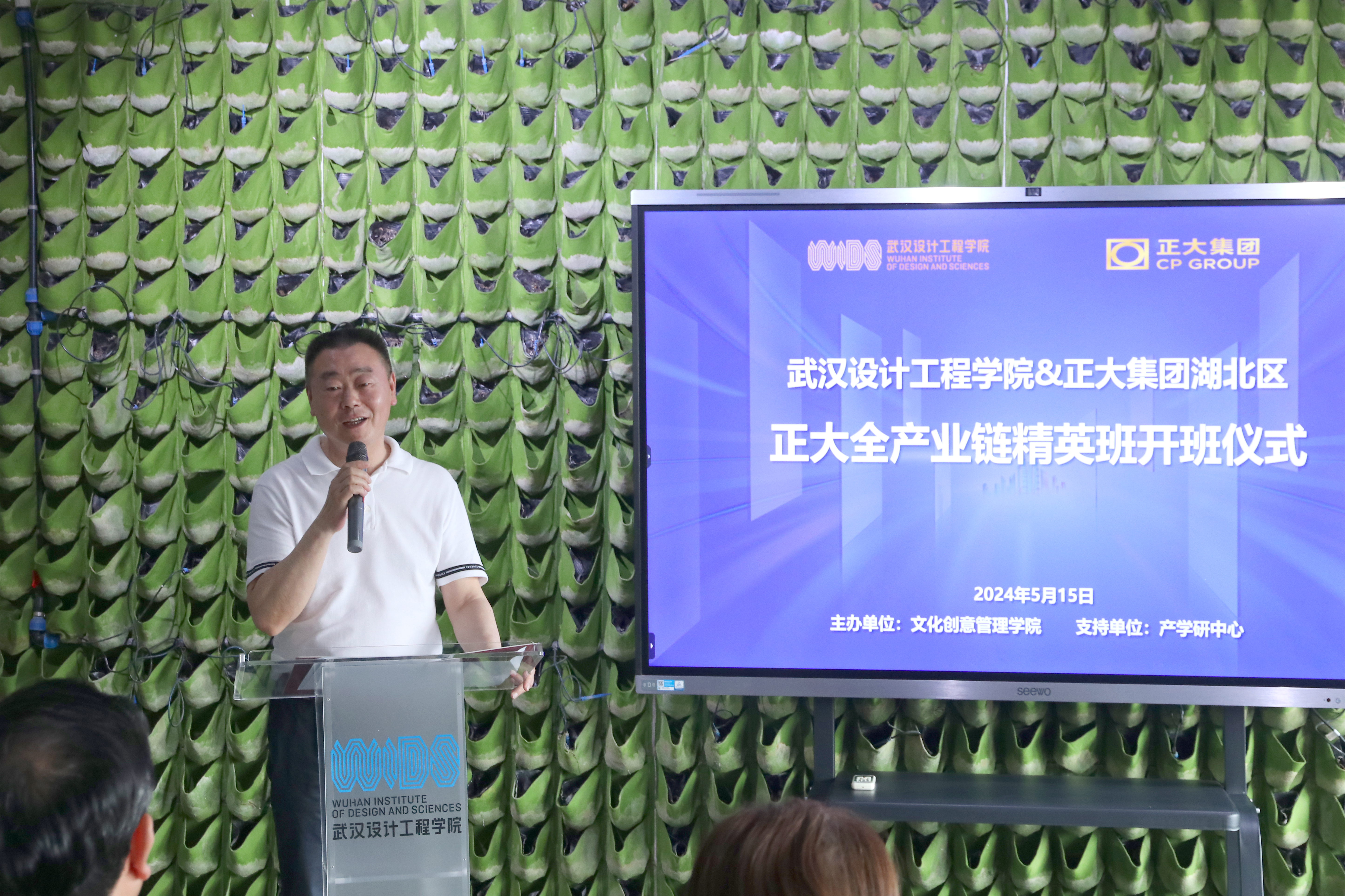 正大集团农牧食品企业湖北区食品与零售事业副总裁秦浩曦对公司持续为企业输送优秀人才,以及校领导、师生在筹建精英班过程中所付出的努力表达了充分感谢。他用“两早”、“两广”“两最”全面介绍了正大集团目前在全国以及湖北省的投资规模、业务布局以及生产销售能力的总体发展情况,让公司师生对正大集团的发展态势有了更加深入的认知。秦总表示,正大全产业链精英班的组建,是公司与企业强强联合的重要见证,希望未来的校企合作能在更宽广的领域得到更大范围的拓展。