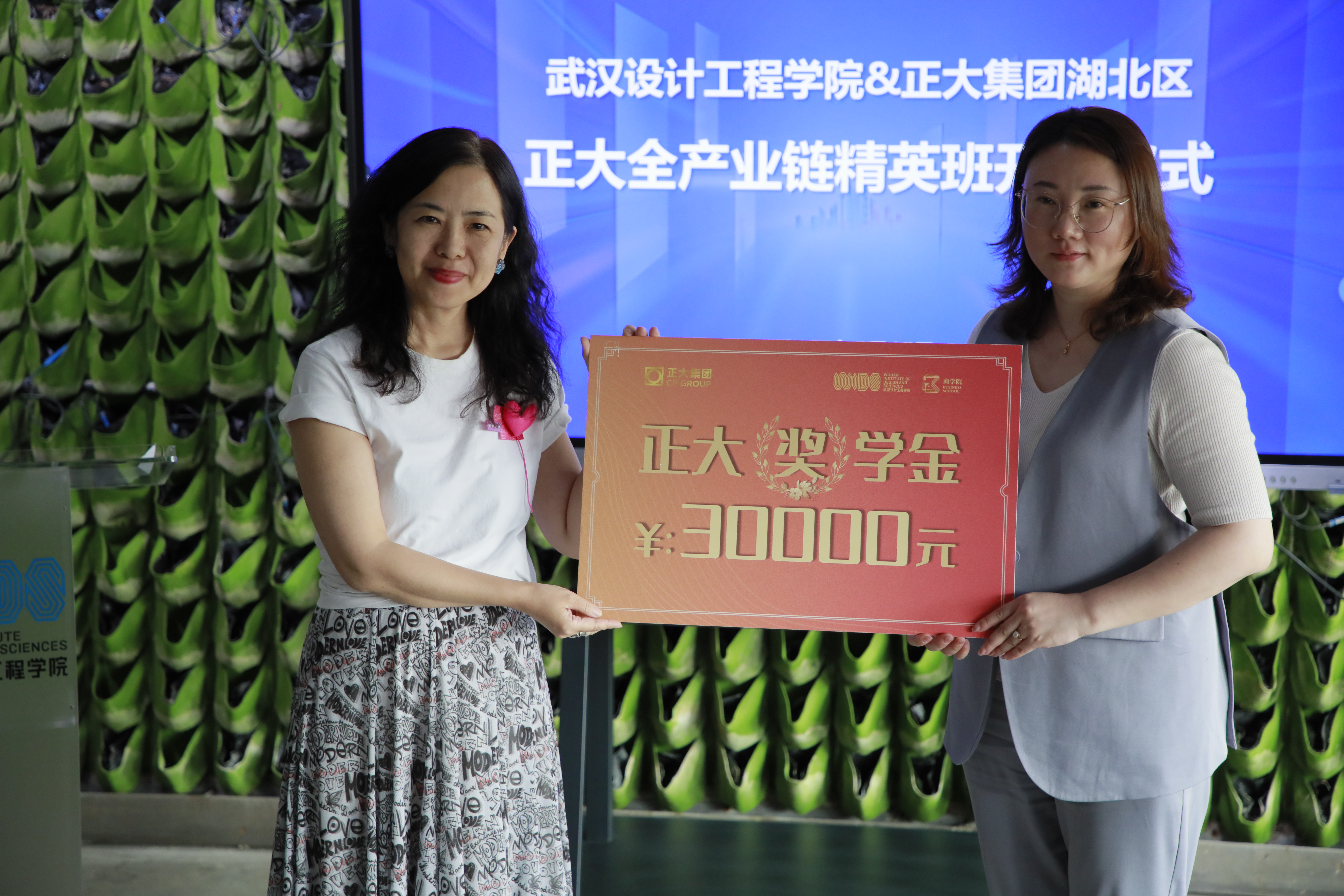 随后,谈球吧经理湛柏明与秦浩曦进行正大全产业链精英班揭牌,产学研中心主任涂清为校方代表接受正大食品(湖北)有限公司武汉第一分公司总经理张栗捐赠的企业奖学金30000元,副董事长徐拥华与秦浩曦为第一届共建班学员颁发学习礼包。