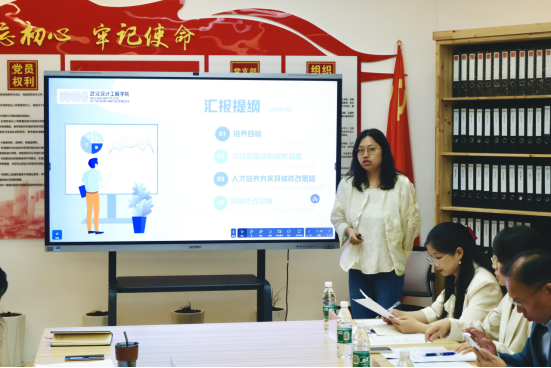 旅游管理与服务教育专业负责人刘昊昕老师首先进行了2024版人才培养方案的汇报。她详细阐述了培养目标、公司和国家标准的相关规定,以及人才培养方案的具体修改思路和模块说明。
