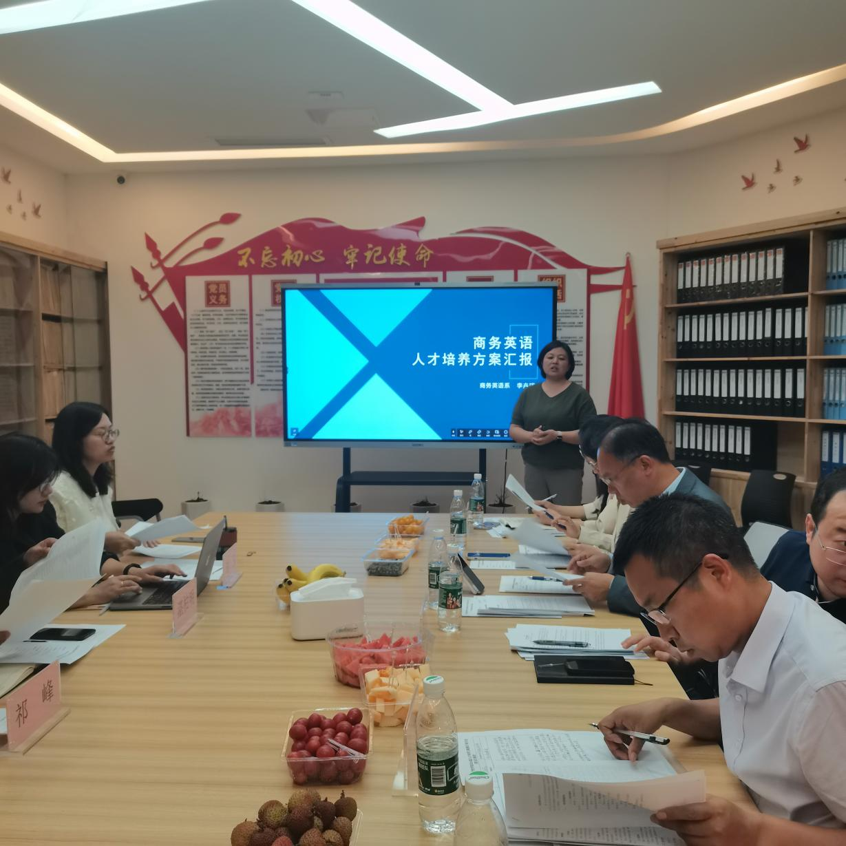 商务英语专业负责人李卉琼老师从商务英语专业的专业定位、人才培养定位、往届毕业生去向出发,阐述了人才培养方案修订的思路,对专业课程设置方案进行了展示,并就专业建设和专业转型等方面的事项做出了详细说明。与会代表和专家们随后针对英语类专业人才的多元发展可行性和企业需求进行了开放式讨论。高校专家柯可主任建议在大一增加认知实习,给员工提供走进企业直面社会的机会。行业专家杨骏建议在员工大二和大三期间可以深入企业进行实习,进一步提升员工对行业、企业和职业的认知,激发员工学习的内驱力,提升员工的职业发展意识,夯实公司和专业应用型的特色。