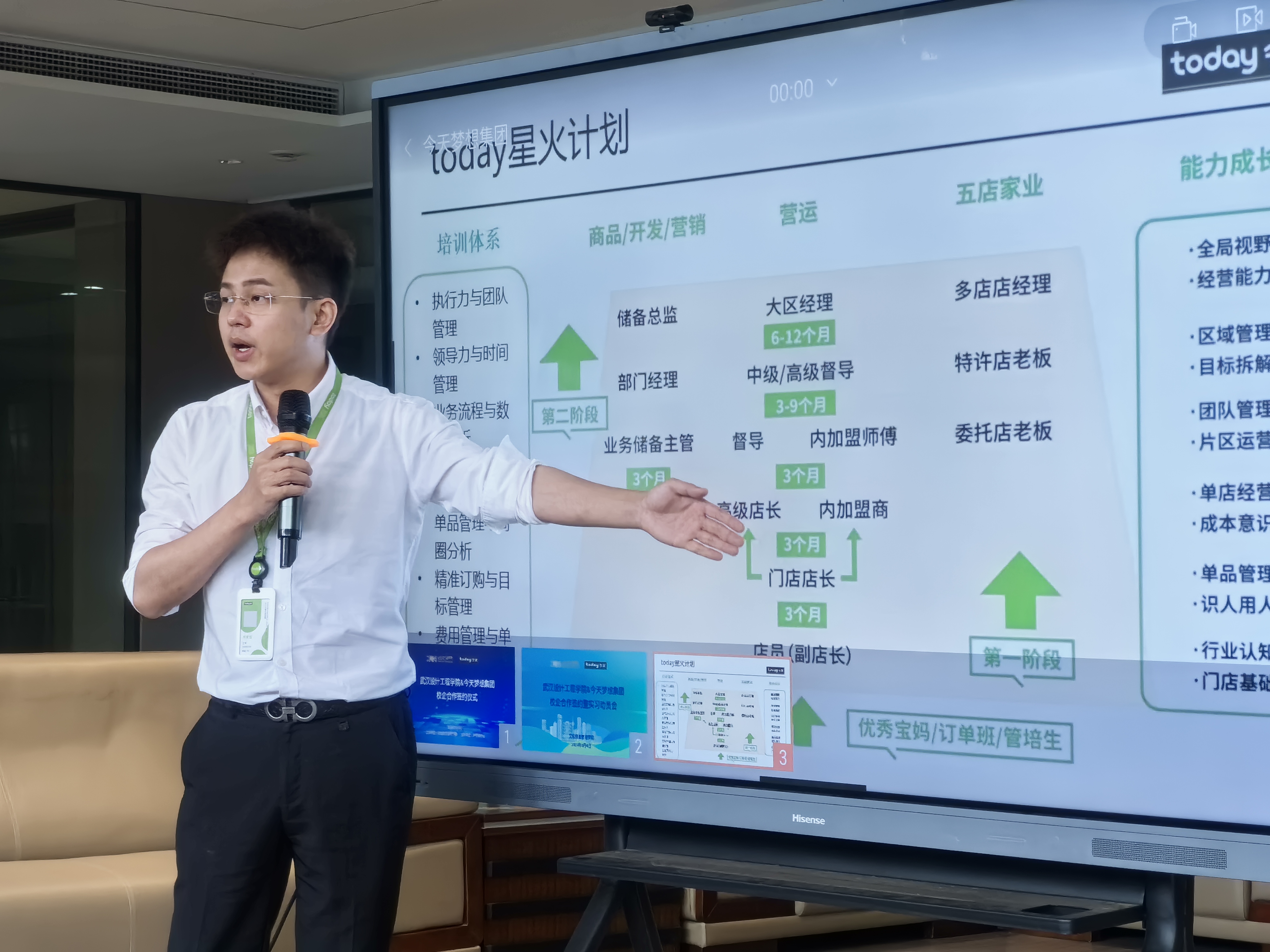today今天梦想集团创始人、董事长宋迎春对公司为企业输送优秀人才,以及校领导、师生在推进校企过程中所付出的努力表达了充分感谢。宋迎春董事长通过介绍日本、泰国等国家地区目前在便利店门店数量、零售产值、就业规模等方面的实际情况,结合国外便利店行业的发展经验,指出中国便利店行业正在经历着黄金30年,today怀揣着将武汉打造为“中国便利店之都”的梦想,充分借鉴湖畔大学教育理念与正大管理公司“三三制”人才培养体系,为促进高等教育产学研一体化的创新发展、为推动中国企业家和创业家事业梦想的实现贡献团结精诚之力。