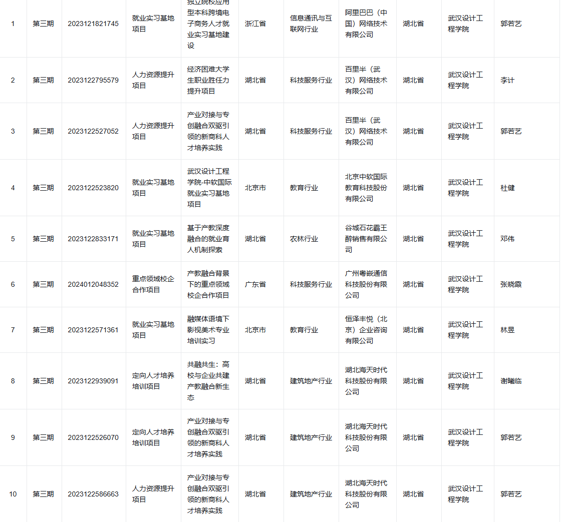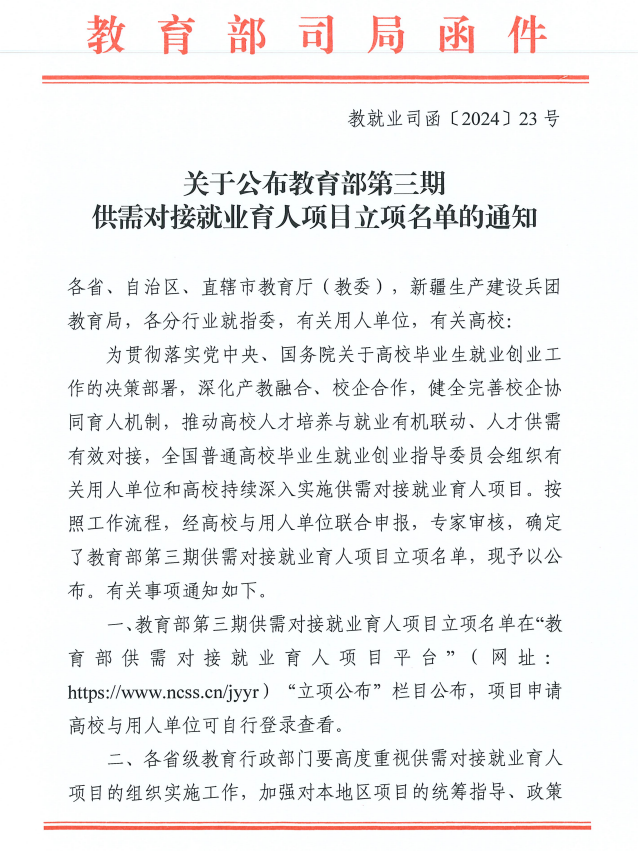 近日,教育部高校员工司发布《关于公布教育部第三期供需对接就业育人项目立项名单的通知》,谈球吧12个供需对接就业育人项目获批立项,其中就业实习基地项目9个、定向人才培养项目1个、人力资源提升项目2个。