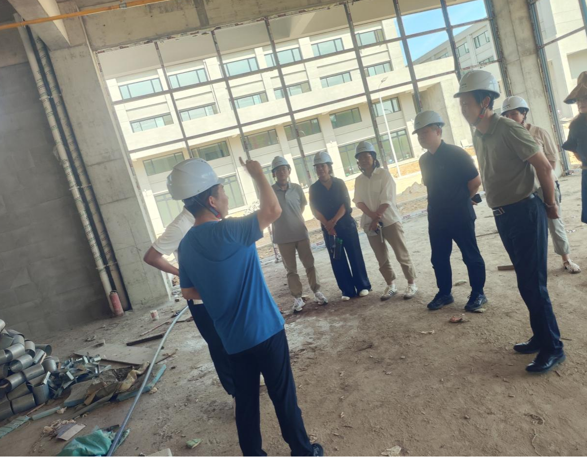 与会嘉宾实地考察谈球吧体育官网入口(红安校区)实验大楼的建设进展