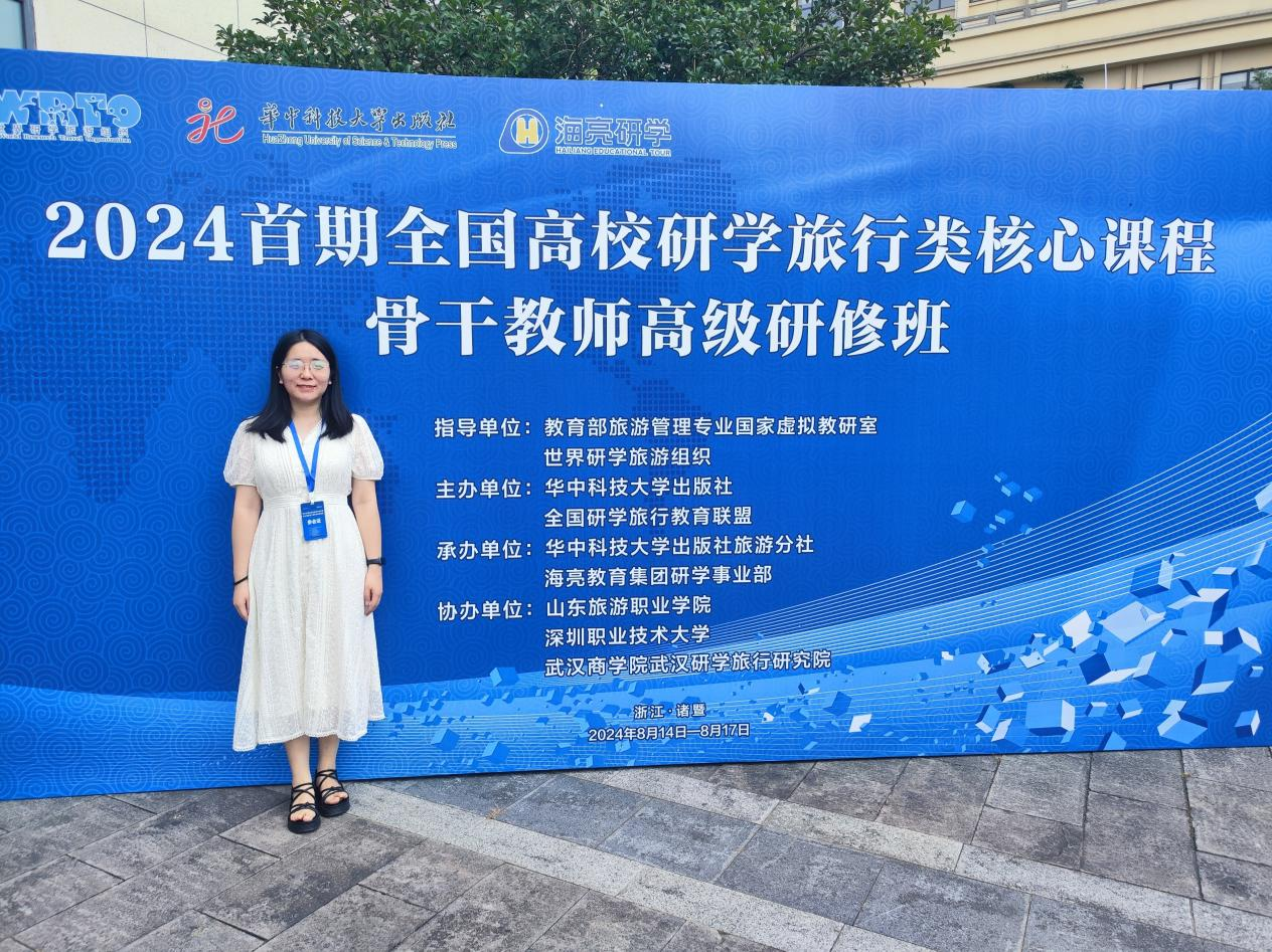 8月14日至17日,旅游管理与服务教育教师周孟孟参加了在浙江省诸暨市举办的2024首期全国高校研学旅行类核心课程骨干教师高级研修班。本次研修班汇聚了来自四川大学、华南师范大学、华侨大学、谈球吧体育官网入口、湖北文旅集团等全国50余所高校、知名企业及科研机构的80多位专家、学者、企业高管及骨干教师精英齐聚一堂,共同探讨研学旅行教育的新趋势与未来发展路径。通过本次研修班,教师对研学旅行核心课程的前沿教学理念与实战经验进行了深入的学习,并与参会嘉宾就研学项目经典案例、研学出版物研发等热点话题进行了深入交流。周孟孟老师表示,未来将持续关注研学旅行教育的前沿动态,将本次收获的理论知识与行业实践紧密结合,共同助力我国研学旅行教育的创新与发展。