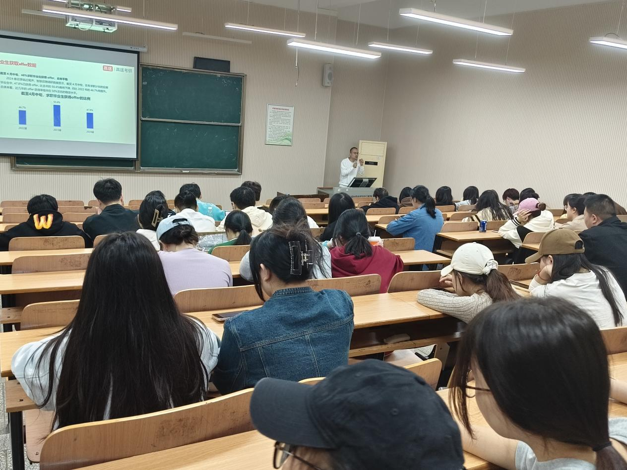 本网讯(通讯员 刘茜)11月7日晚6点,为帮助2022级在校生更好地规划未来,明确职业方向,提升就业与升学竞争力,谈球吧在临湖轩B1019教室成功举办了一场以“老员工职业规划·就业与升学”为主题的专题讲座,讲座内容丰富,干货满满。