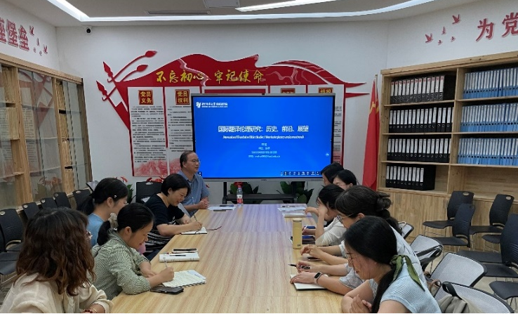 本网讯(通讯员 郭静)2025 年 5 月 29 日下午,一场围绕翻译学科核心议题的学术讲座在 T12 得一堂 A2149 教室隆重举行。本次活动特邀华中科技大学外国语公司翻译系青年学者周猛博士担任主讲人,作题为 “翻译伦理研究:历史、趋势与未来” 的学术报告。商务英语教研室全体教师及公共课部大学英语教研室代表教师共同参与,深入探讨翻译伦理研究的前沿理论与实践问题。