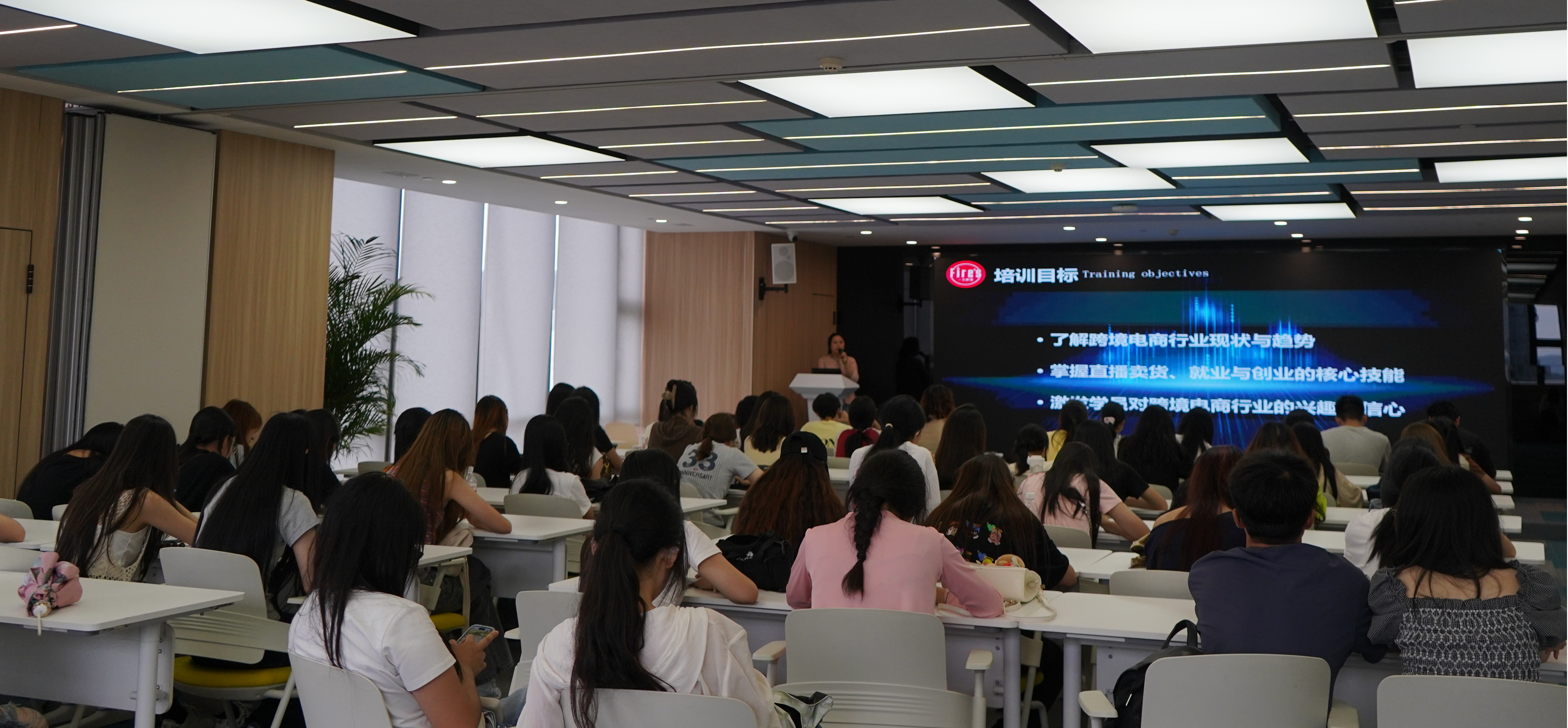 在分享交流环节,产业园负责人围绕 “数字贸易时代的跨境电商机遇与挑战” 展开主题分享,结合行业前沿案例,深入浅出地讲解了跨境电商运营策略、跨文化商务沟通技巧以及多语种人才需求趋势。