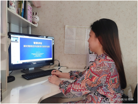 本网讯(通讯员 赵丹)5月10日,商公司大学英语教研室赵丹老师参与了线上“新时期高校外语教育与教学发展”智慧讲坛的学习。此次线上研讨会是由教育部高等公司外国语言文学类专业教学指导委员会、教育部高等公司大学外语教学指导委员会、外语教学与研究出版社、北京外研在线数字科技有限公司共同举办。