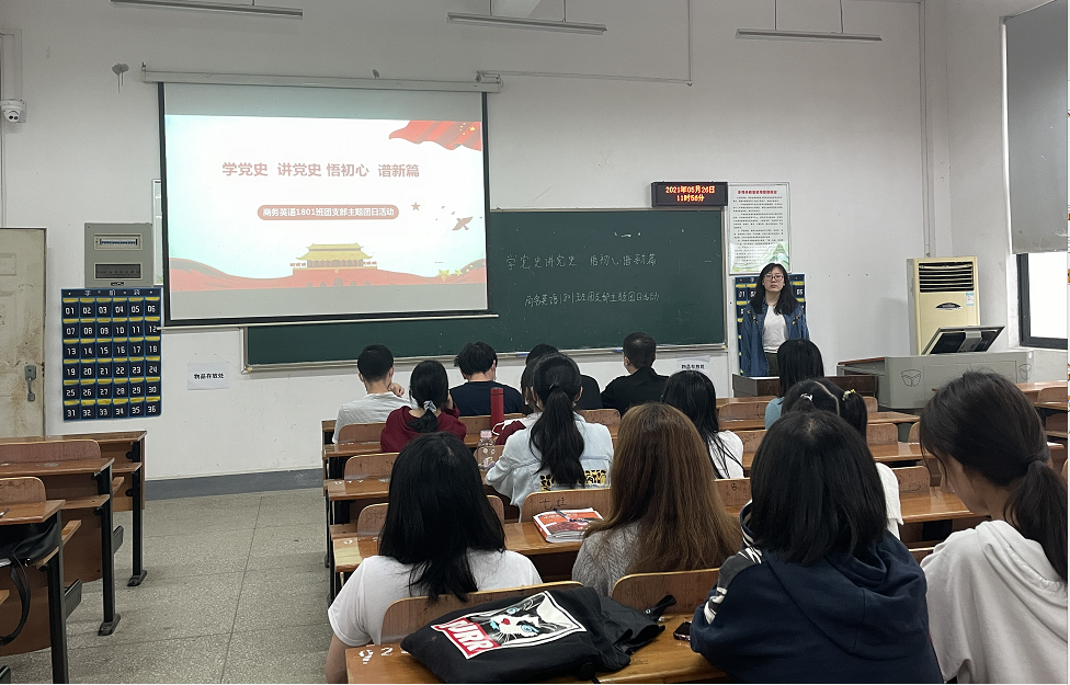 本网讯(通讯员 张慧)5月17日商务英语2018级1班团支部于临湖轩A5049开展百生讲坛--学习宣传贯彻习近平新时代中国特色社会主义思想活动暨“学党史讲党史,悟初心谱新篇”主题团日活动。