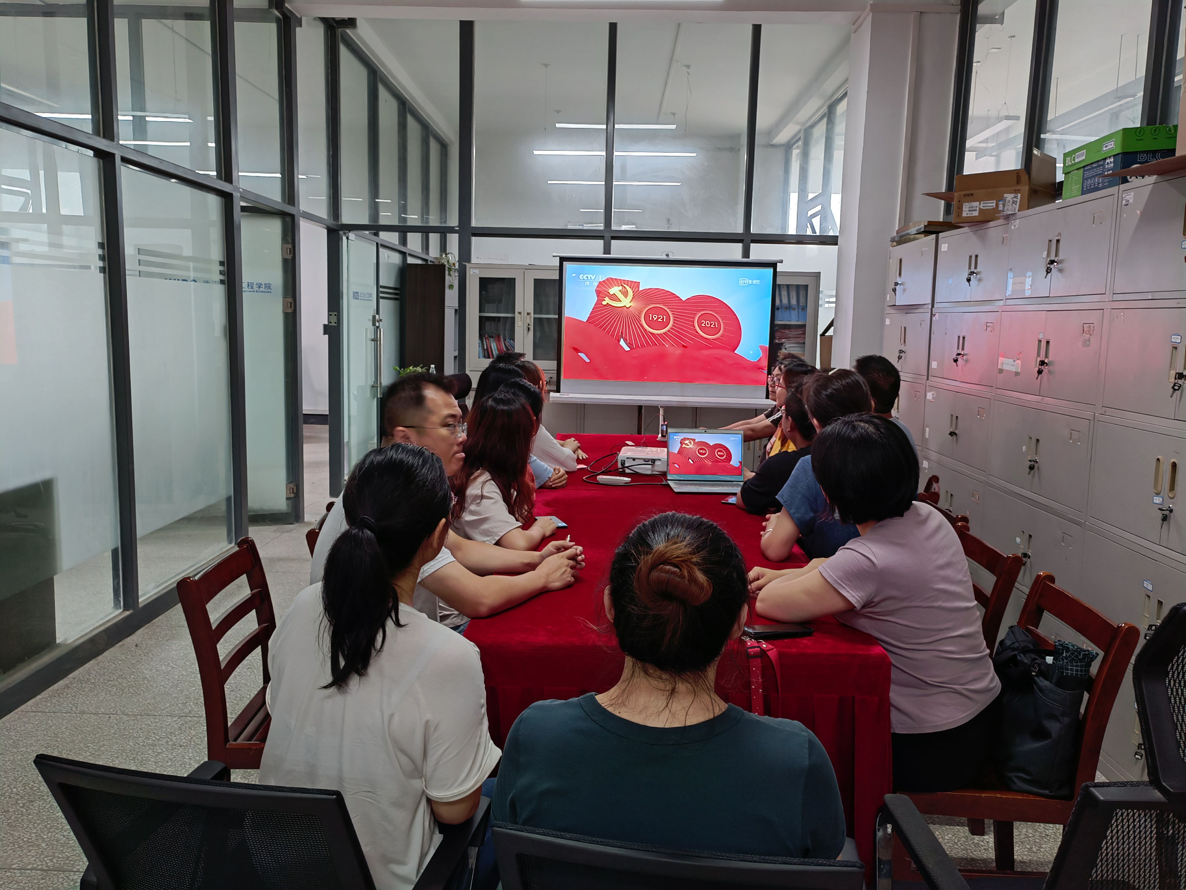 本网讯(通讯员 郭若艺)为庆祝中国共产党诞生一百周年,7月1日上午,商公司教师齐聚临湖轩三楼教务办公室,集体观看了建党100周年庆祝大会直播,大家备受鼓舞,一百年风雨兼程,一世纪沧桑巨变。并在直播结束后进行了座谈会,展开了热烈的讨论学习。