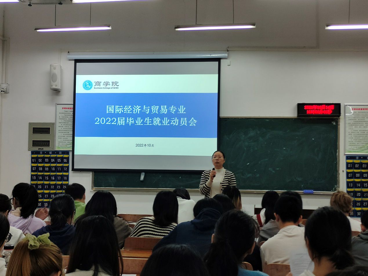 商公司胡紫玲书记为国际经济与贸易专业毕业生作动员讲话