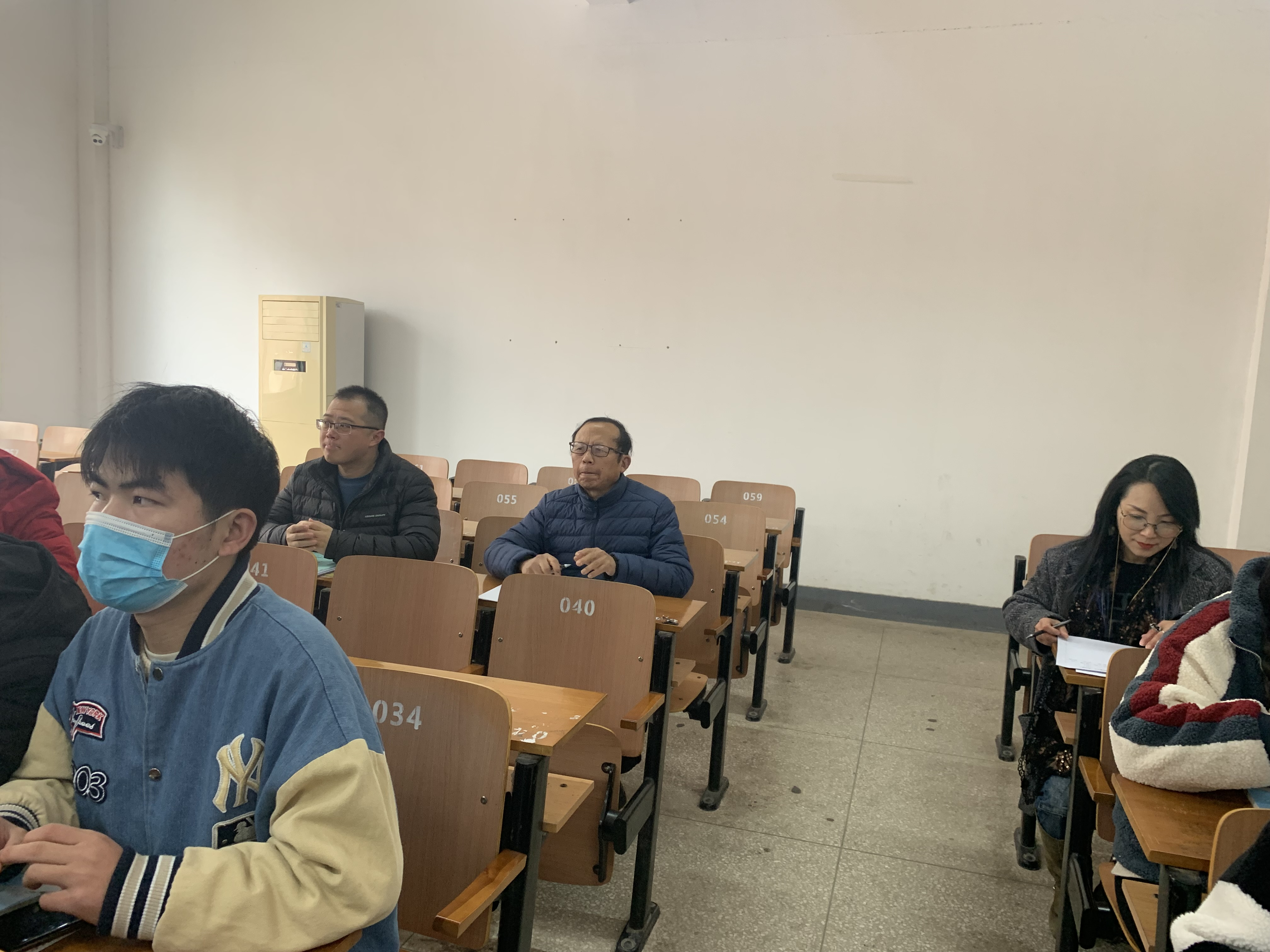 副董事长徐拥华、公司党总支部书记胡紫玲、院督导张希在“统计学原理”课堂听课