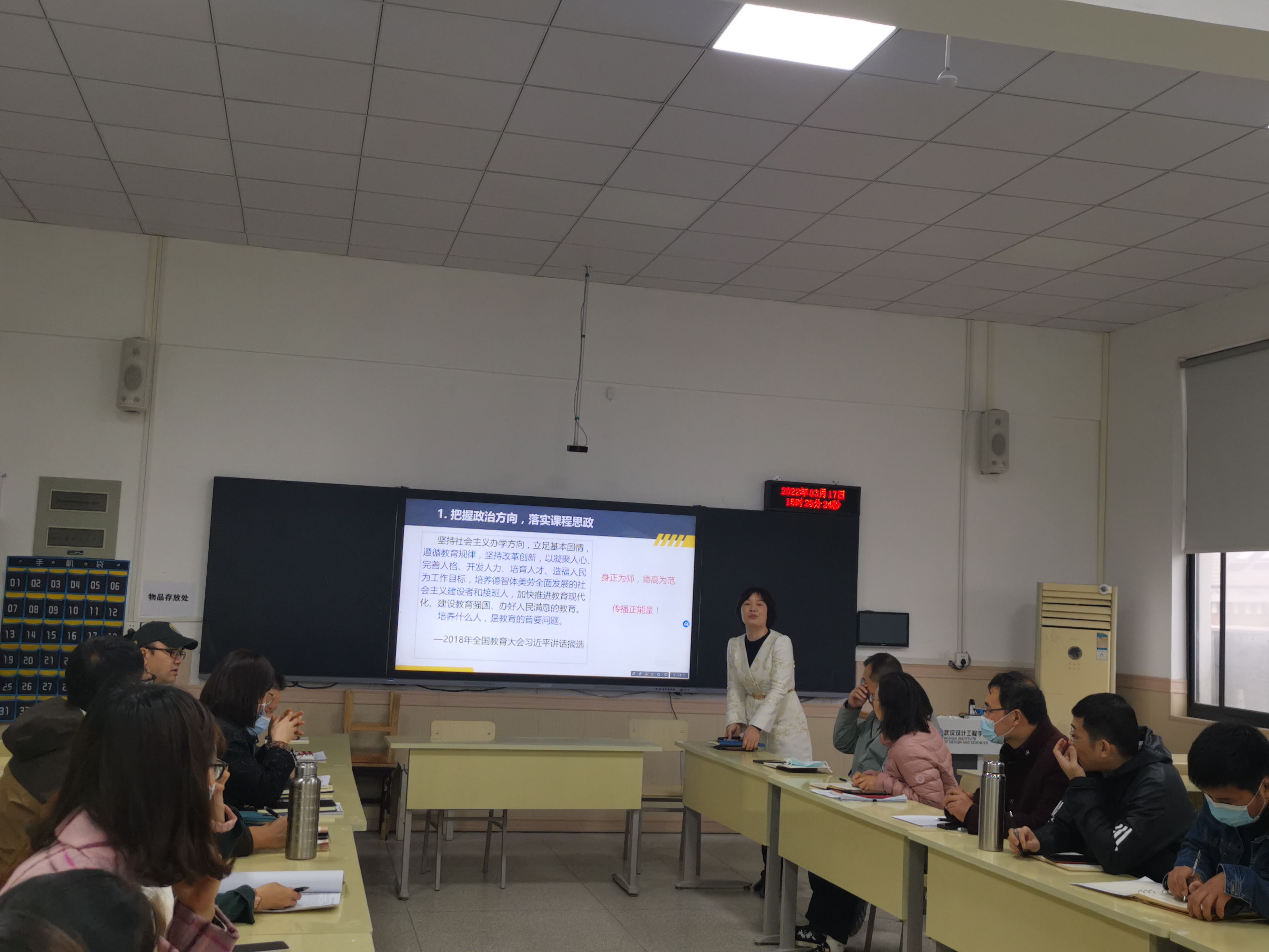 本网讯(通讯员 杜宇)3月17日下午,校级教学督导专员梅爱冰教授应邀来到商公司作题为《怎样上好一堂课》的专题报告,商公司胡紫玲书记、张亮副经理及全体教师参会聆听了报告。